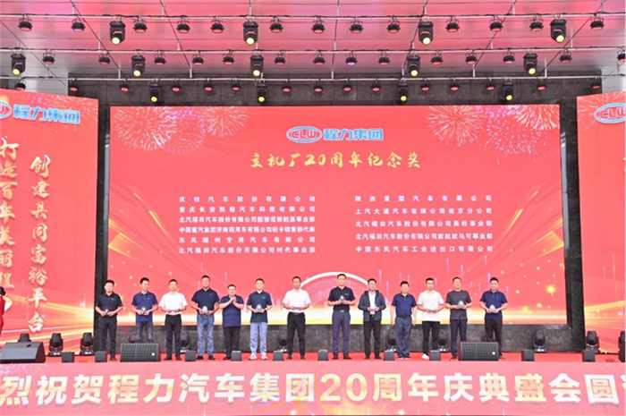北汽福田汽車股份有限公司Y事業(yè)部總裁宋洋先生在致辭中,也全面回顧了福田與程力緊密合作的深厚友誼,對(duì)程力20年來(lái)的發(fā)展成就表示充分的肯定和由衷的贊許。北汽福田汽車股份有限公司助力程力在小卡、微卡實(shí)現(xiàn)行業(yè)引領(lǐng),打造了標(biāo)桿市場(chǎng),市場(chǎng)份額達(dá)到70%,推動(dòng)了細(xì)分市場(chǎng)的發(fā)展與創(chuàng)新;新冠疫情期間,江鈴汽車股份有限公司鼎力馳援、力保醫(yī)療救護(hù)車交付7000余臺(tái),收到了國(guó)務(wù)院來(lái)信表?yè)P(yáng)。 江鈴汽車股份有限公司副總裁兼江鈴汽車銷售有限公司總經(jīng)理劉讓坡先生在致辭中,盤點(diǎn)了江鈴與程力兄弟般情誼的合作佳話。 除上述主機(jī)廠代表發(fā)言外,程力與一汽解放、東風(fēng)商用車、安徽江淮、長(zhǎng)安凱程、南京依維柯、陜汽集團(tuán)、東風(fēng)隨專、上汽大通、成都壹為、三環(huán)汽車等合作單位,先后聯(lián)袂打造了航天醫(yī)監(jiān)醫(yī)保車、應(yīng)急救險(xiǎn)車等眾多的成功合作案例,正是各位底盤合作單位的鼎力相助,我們將天馬行空的設(shè)計(jì)理念轉(zhuǎn)化為馳騁路面的各類專用車輛,讓每一款改裝作品都閃耀著獨(dú)特的光芒,成為行業(yè)內(nèi)的佼佼者。 襄陽(yáng)達(dá)安汽車檢測(cè)中心有限公司副總經(jīng)理齊剛先生致辭。程力公司自建廠以來(lái),與襄陽(yáng)達(dá)安檢測(cè)中心展開合作。作為國(guó)家級(jí)的檢測(cè)機(jī)構(gòu),襄陽(yáng)達(dá)安在公告、環(huán)保、營(yíng)運(yùn)等檢測(cè)認(rèn)證,以及檢測(cè)場(chǎng)地、專家團(tuán)隊(duì)等諸多方面,都給予了我們強(qiáng)有力的支持,特別是今年襄陽(yáng)達(dá)安隨州專用汽車和應(yīng)急裝備試驗(yàn)場(chǎng)投入運(yùn)營(yíng),更是助力隨州汽車企業(yè)的發(fā)展。程力一路走來(lái),離不開襄陽(yáng)達(dá)安的支持和幫助,在此對(duì)襄陽(yáng)達(dá)安檢測(cè)中心表示衷心的感謝! 賡即,集團(tuán)公司董事局主席程道國(guó)、董事長(zhǎng)程阿羅向來(lái)自全國(guó)參加慶賀的主機(jī)廠代表贈(zèng)予了程力20年“合作紀(jì)念獎(jiǎng)”獎(jiǎng)?wù)隆?br /> 程力汽車集團(tuán)副總經(jīng)理倪文進(jìn)(左)向檢測(cè)機(jī)構(gòu)襄陽(yáng)達(dá)安汽車檢測(cè)中心有限公司、中汽研汽車檢驗(yàn)中心(武漢)有限公司代表,贈(zèng)予了程力20年“合作紀(jì)念獎(jiǎng)”獎(jiǎng)?wù)隆?br /> 民族品牌,唱響世界。程力不僅是中國(guó)的程力,也是世界的程力;程力集團(tuán)在湖北省建有五大核心制造基地,在立足本地的同時(shí),我們用市外聯(lián)營(yíng)模式走向全國(guó)走向世界,已成為行業(yè)的楷模和榜樣。這一成就典范的背后,離不開程力市外聯(lián)營(yíng)單位的突出貢獻(xiàn),我們的市外聯(lián)營(yíng)合作伙伴,憑借出色的業(yè)務(wù)成果、創(chuàng)新的合作模式,以及深遠(yuǎn)的對(duì)外影響力,在眾多單位中脫穎而出,程力集團(tuán)總經(jīng)理朱武(右)向全國(guó)6家市外聯(lián)營(yíng)單位的代表頒發(fā)了“程力20周年紀(jì)念獎(jiǎng)”獎(jiǎng)?wù)隆?br /> 程力集團(tuán)銷售總公司常務(wù)副總經(jīng)理袁美玲(左)向全國(guó)共9家服務(wù)站及直營(yíng)店代表頒發(fā)了“程力20年紀(jì)念獎(jiǎng)”獎(jiǎng)?wù)隆_@些在奮戰(zhàn)銷售第一線的直營(yíng)店,以及售后領(lǐng)域默默耕耘的服務(wù)站,他們用不懈的努力和專業(yè)的態(tài)度贏得了口碑,他們辛勤的付出,為程力產(chǎn)品的銷售與服務(wù)做出了巨大貢獻(xiàn)。 二十年比肩同行,二十年披星戴月,二十年同舟共濟(jì),我們更要感恩程力專業(yè)廠、直屬?gòu)S的辛勤付出和默默奉獻(xiàn)。程力集團(tuán)黨委書記袁昌才、總經(jīng)理朱武,為默默耕耘8年以上的生產(chǎn)經(jīng)營(yíng)單位共負(fù)責(zé)人頒發(fā)了“程力20周年紀(jì)念獎(jiǎng)”獎(jiǎng)?wù)隆?br /> 集團(tuán)公司的發(fā)展離不開最早的一批創(chuàng)業(yè)者,雖然他們已經(jīng)退休,但仍然無(wú)時(shí)無(wú)刻關(guān)注著集團(tuán)的發(fā)展。他們?cè)诠竟ぷ鞫汲^(guò)15年,為集團(tuán)的發(fā)展作出了巨大的貢獻(xiàn),集團(tuán)董事局常務(wù)副主席程國(guó)強(qiáng)為光榮退休忠誠(chéng)敬業(yè)獎(jiǎng)老員工頒發(fā)了獎(jiǎng)?wù)?/span>。 當(dāng)我們攜起手來(lái),總有溫暖的臂膀在支撐;一代一代程力人薪火相傳,兢兢業(yè)業(yè),開拓創(chuàng)新,奮發(fā)圖強(qiáng),鑄就了今日輝煌,程力汽車集團(tuán)公司為15年至18年工齡獲得忠頒發(fā)了誠(chéng)敬業(yè)獎(jiǎng)。 集團(tuán)董事局常務(wù)副主席程國(guó)強(qiáng)、集團(tuán)董事局副主席郭傳文、集團(tuán)董事局副主席黃尚財(cái)、集團(tuán)董事局委員廖明洲、集團(tuán)董事局辦公室主任楊祖國(guó)為獲獎(jiǎng)人員頒獎(jiǎng),并合影留念。 集團(tuán)董事局主席程道國(guó)、集團(tuán)董事長(zhǎng)程阿羅為19年及20年工齡的忠誠(chéng)敬業(yè)獎(jiǎng)獲獎(jiǎng)?wù)哳C獎(jiǎng),并合影留念。頒獎(jiǎng)現(xiàn)場(chǎng)一陣陣熱烈的掌聲,表達(dá)了對(duì)程力忠誠(chéng)敬業(yè)的員工們表示衷心的感謝,正是有了廣大員工在公司忠誠(chéng)堅(jiān)守,程力才有一代一代的
