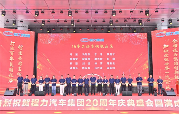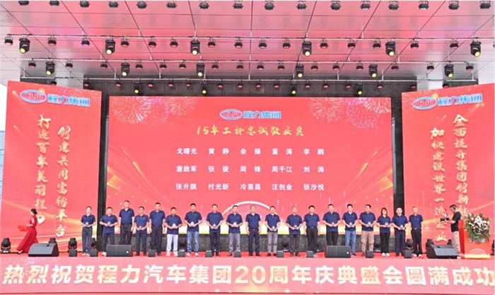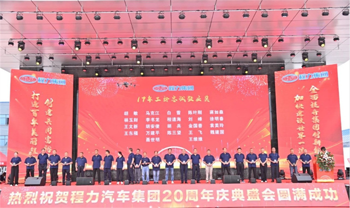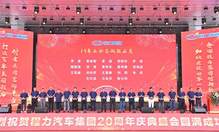 篇章一:9月15日上午之“程力二十年,攜手向未來(lái)”慶典表彰大會(huì) ![]() ![]() “鑄專汽領(lǐng)軍品牌,建世界一流企業(yè)”;“程力二十年,攜手向未來(lái)”,2024年9月15日上午,金秋時(shí)節(jié)的炎帝神農(nóng)故里隨州,在程力(曾都)汽車工業(yè)園數(shù)字化智慧工廠文化廣場(chǎng),陽(yáng)光明媚碩果累累,鮮花綻放丹桂飄香;來(lái)自隨州市、區(qū)的領(lǐng)導(dǎo)嘉賓,全國(guó)各大主機(jī)廠、汽車零部件上下游供貨商、售后服務(wù)站,以及程力直營(yíng)店、市外聯(lián)營(yíng)單位的代表,以及程力各生產(chǎn)經(jīng)營(yíng)單位的負(fù)責(zé)人、集團(tuán)公司15年至20年工齡忠誠(chéng)敬業(yè)員工、光榮退休的元老,共1000余人,歡聚一堂喜氣洋洋,共同參加了集團(tuán)公司20周年盛大慶典,攜手同行的合作伙伴和友商,紛紛發(fā)來(lái)了賀信、賀函,先后發(fā)來(lái)賀信、賀電或祝福視頻。 程主席致詞贊揚(yáng)道:程力人二十載風(fēng)雨兼程,二十載砥礪奮進(jìn),全體員工敢于創(chuàng)新勇立潮頭,心無(wú)旁騖專注汽車制造,不忘初心、肩負(fù)使命、奮斗不止,程力人是“程力精神”的創(chuàng)造者、弘揚(yáng)者,是公司發(fā)展的建設(shè)者和主人翁;二十年來(lái),程力從無(wú)到有、從弱到強(qiáng),這一發(fā)展壯大的絢麗篇章,記載了程力人為中國(guó)專汽之都增光添彩的奮斗歷程;在20年的開拓征程中,程力人群策群力、攻堅(jiān)克難,打贏了一個(gè)又一個(gè)攻堅(jiān)戰(zhàn),在汽車制造和應(yīng)急裝備領(lǐng)域,深耕沃土,實(shí)現(xiàn)了跨越式的高速增長(zhǎng),奠定了專汽領(lǐng)軍地位,豎立了行業(yè)豐碑,程力品牌馳名中外、享譽(yù)世界,老一輩程力人為此付出了卓越的貢獻(xiàn)。