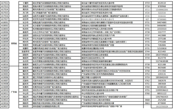 汽車湖北省、河南省、廣東省服務站通訊錄: