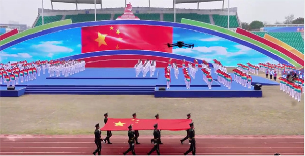 陳文勝代表省體育局,向隨州市第三屆運動會開幕表示祝賀。他說,隨州市委、市政府堅持體育強市戰略,著力打造“動感隨州”城市名片,全民健身紅紅火火,大型賽事活動精彩紛呈,體育產業生機盎然,全民健身公共服務體系日益完善,為體育強省建設作出了重要貢獻。希望隨州市以第三屆運動會的成功舉辦為契機,大力發展以人民為中心的體育事業,銳意進取、奮勇爭先,加快建設體育強市,為奮力推進中國式現代化湖北體育強省建設作出新的更大貢獻。入場式后,全體起立,在雄壯的國歌聲中,五星紅旗冉冉升起,高高飄揚。