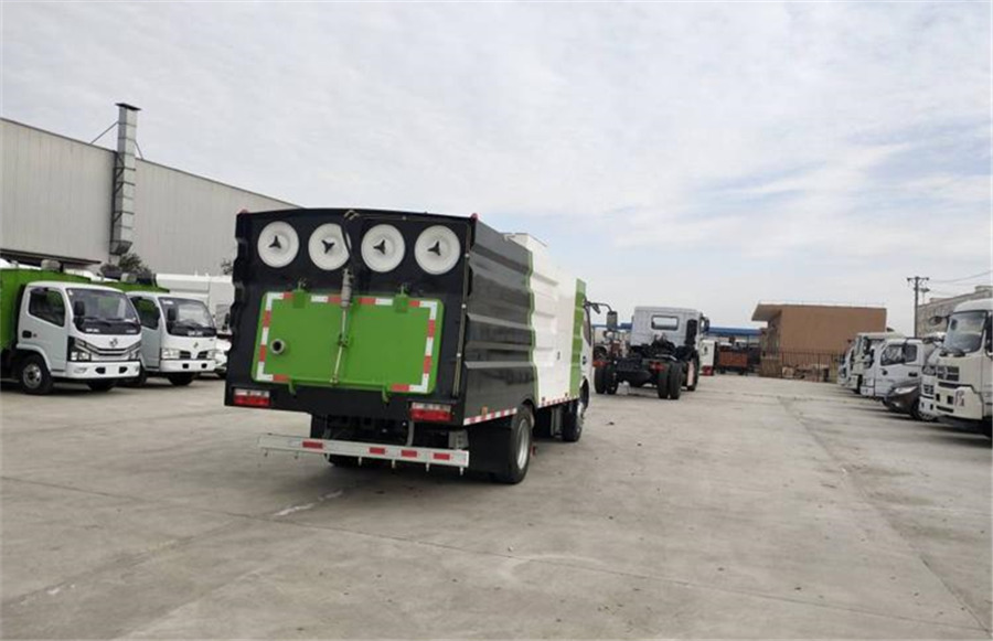 全自動脈沖清灰裝置,行車和駐車自動除塵裝置,進口夜光反光膜,垃圾箱卸料高效噴淋降塵系統,吸塵發動機采用德國無極變速技術自動離合器技術。