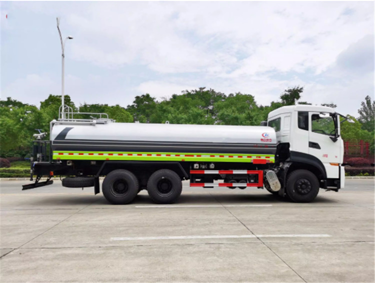 東風(fēng)天龍KL/VL后雙橋?yàn)⑺?/strong>是一款采用國(guó)六排放標(biāo)準(zhǔn)東風(fēng)天龍后雙橋原裝底盤改裝的環(huán)衛(wèi)車,該車配置豪華,駕乘舒適,該車罐體容積:18立方米,標(biāo)配前沖、后灑、側(cè)噴、后平臺(tái)高炮,是園林綠化、小區(qū)物業(yè)、公路養(yǎng)護(hù)的常用車型。 國(guó)六東風(fēng)天龍后雙橋18方高端灑水車(綠化噴灑車)底盤配置:采用東風(fēng)天龍后雙橋原裝底盤,東風(fēng)天龍豪華駕駛室,4400+1350mm軸距,搭載國(guó)六(國(guó)Ⅵ)東風(fēng)康明斯290馬力柴油發(fā)動(dòng)機(jī),功率213kw;東風(fēng)商用DDi350馬力柴油發(fā)動(dòng)機(jī),功率257kw,國(guó)六排放,陜齒法士特9檔變速箱,11.00R20鋼絲胎/295真空胎,前橋5T,后橋雙10T,方向助力,斷氣剎,排氣制動(dòng),原裝空調(diào),行駛記錄儀,多媒體顯示屏,電動(dòng)門窗,中控鎖,氣囊座椅,ABS。 國(guó)六東風(fēng)天龍后雙橋18方高端灑水車(綠化噴灑車)專用配置:罐體容積:18立方米,罐體鋼板為4mm碳鋼Q235材質(zhì)專用容積板一次成型,罐內(nèi)隔板具有防波作用,以減輕汽車行駛時(shí)罐體液體沖擊;配大功率專用灑水泵,泵可自吸自排;整車前沖、后灑、側(cè)噴、后平臺(tái)帶綠化灑水炮,灑水炮可全方位旋轉(zhuǎn),可連續(xù)調(diào)成直沖狀、大雨、小雨、毛毛雨;前封頭帶水位計(jì),后平臺(tái)主管路帶1寸澆花接口,后爬梯,帶1個(gè)消防接頭,帶1個(gè)自流閥,1個(gè)過(guò)濾裝置。